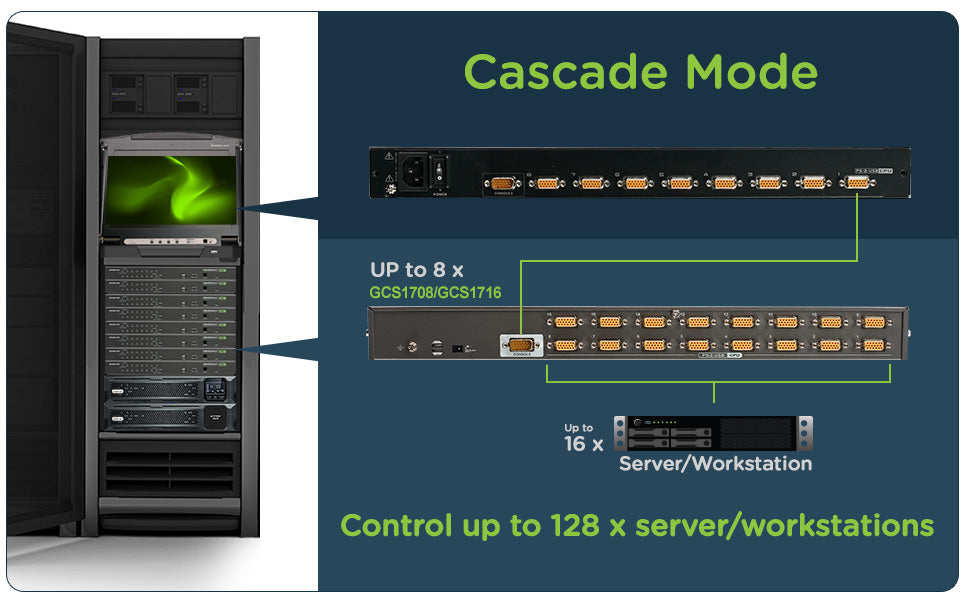 - Cascade up to 2 levels - control up to 128 computers from a single console*