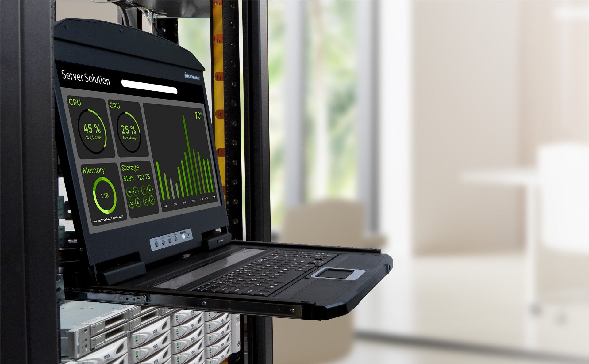 - Integrated LCD KVM console with 18.5” widescreen LCD monitor
