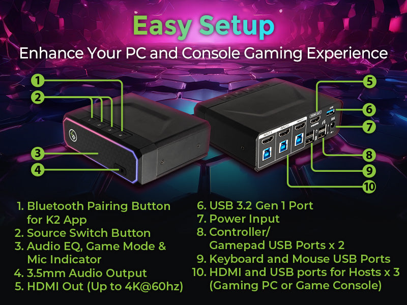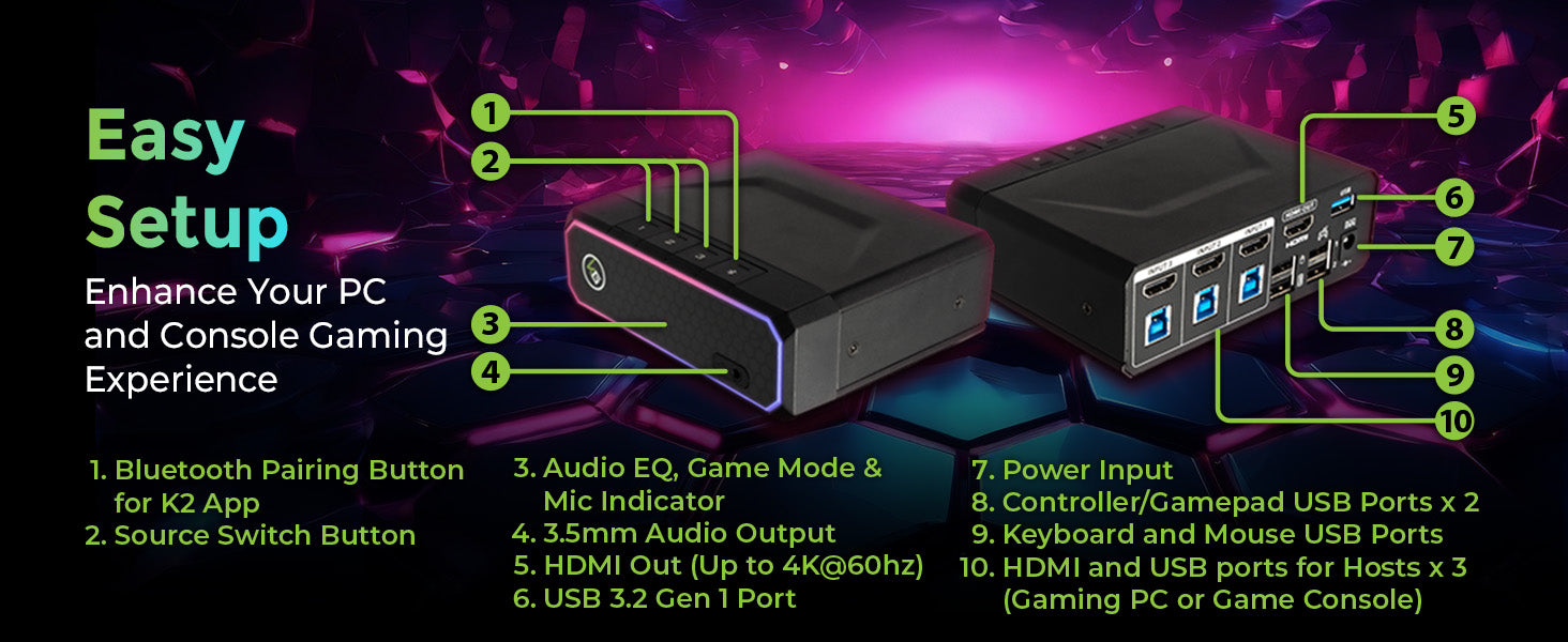 Nexus 3-Port 4K HDMI KVM Switch for PC Gaming & Game Consoles