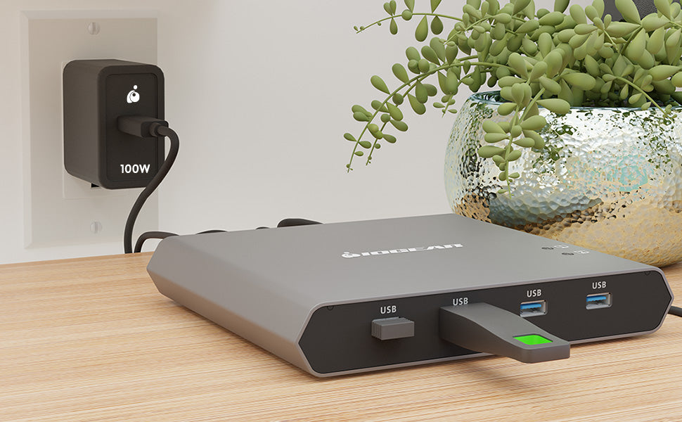 Power Delivery Pass-Thru | Port 1: Supports 100W USB-C PD laptop charging at 5V, 9V, 15V, and 20V output2 Port 2: Supports max. 5V, 3A output |