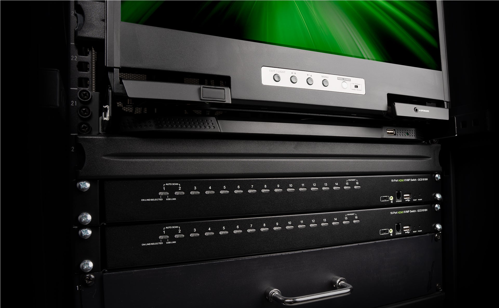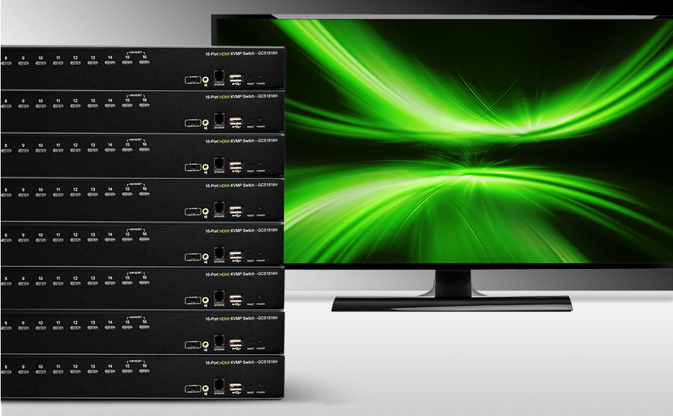 - Multi-display feature allows viewing of up to 8 monitors when stacking up to (8) GCS1816H together
