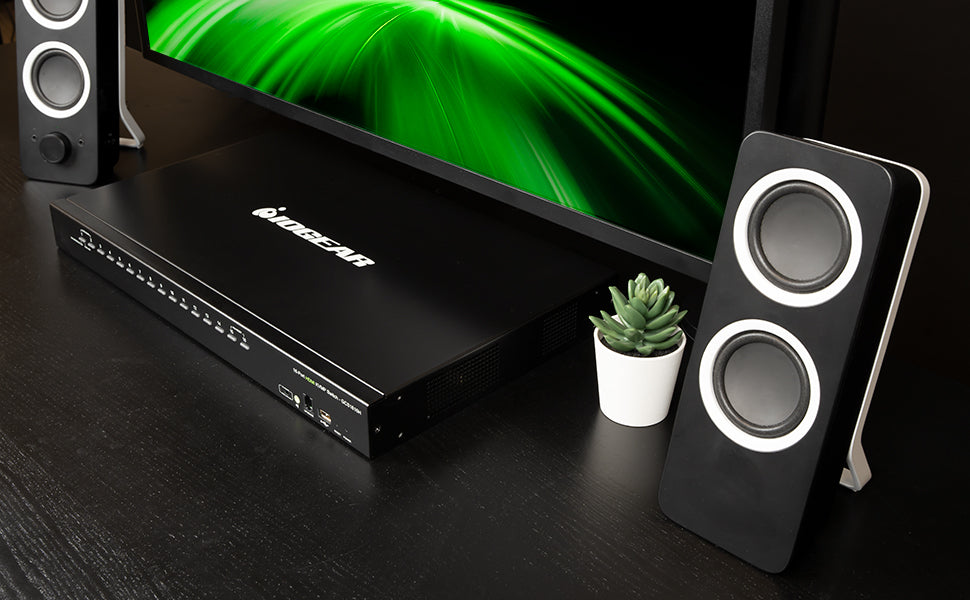 - Controls up to 16 HDMI® sources while sharing 2 additional USB 2.0 devices