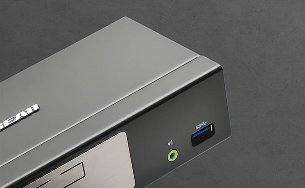 - Independent switching of the KVM, USB, and 2.1 channel audio