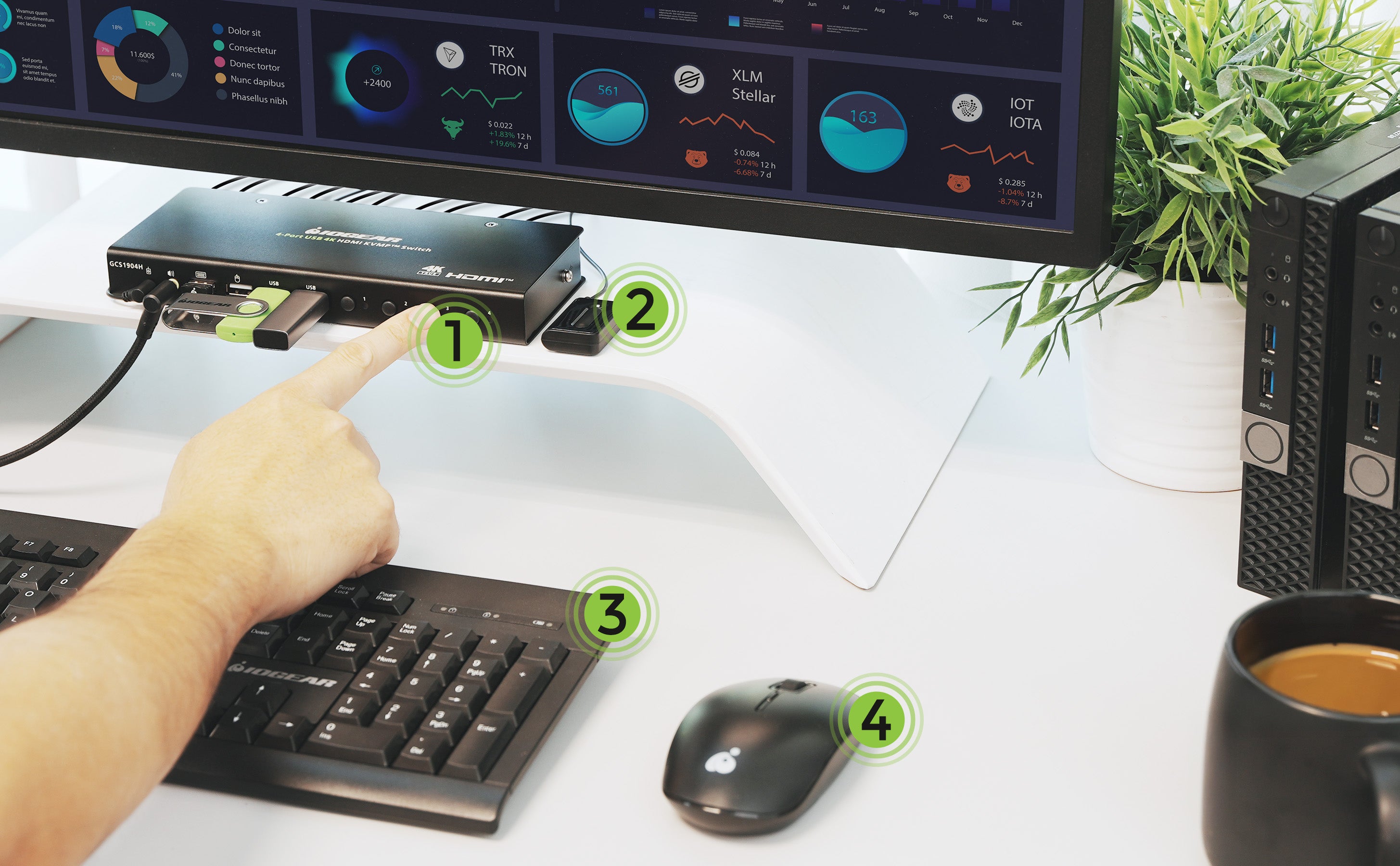 2-Port 4K USB-C Desktop KVM Kit with DisplayPort to HDMI AdapterSKU: GCS1942H