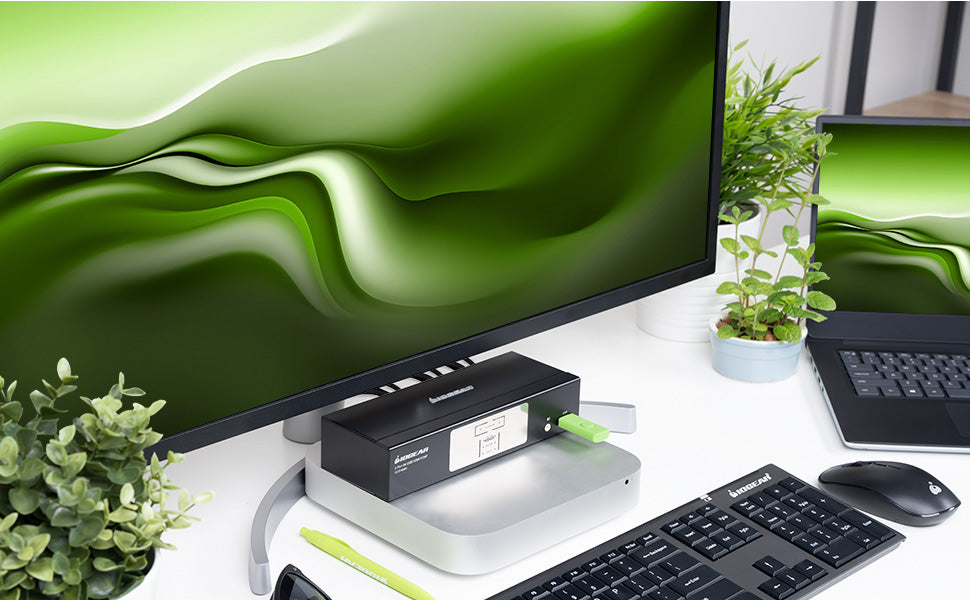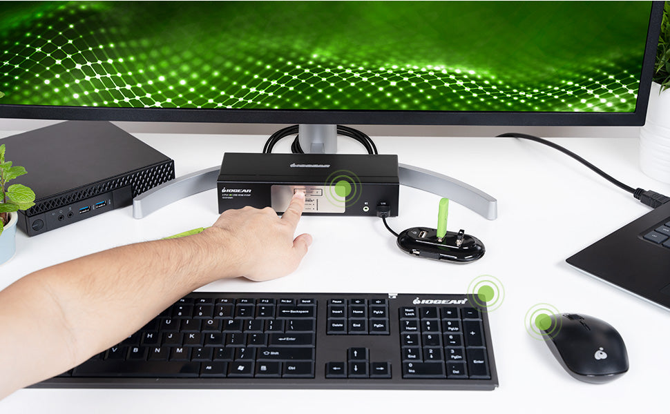 - Control 2 computers using a single keyboard, mouse, and 4K HDMI monitor