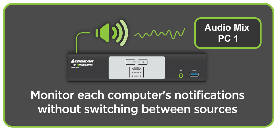 - 1 x 2-Port 4K HD KVMP Switch with USB 3.0 Hub and Audio Mixer