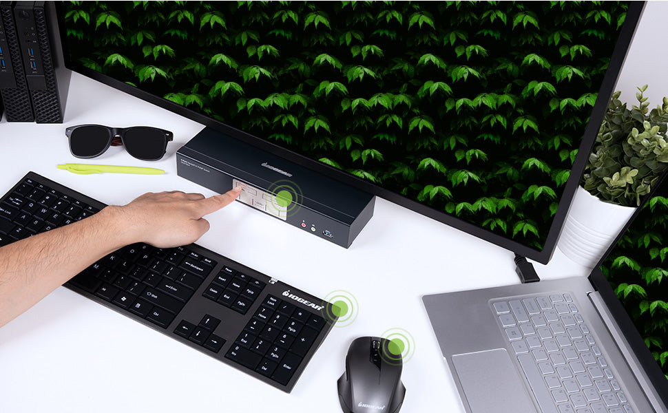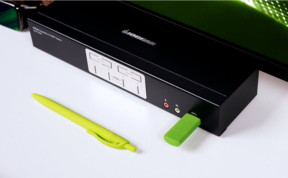 - Independent switching of the KVM, USB, and 2.1 channel audio