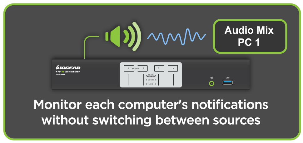 - 1 x 4-Port 4K HD KVMP Switch with USB 3.1 Hub and Audio Mixer