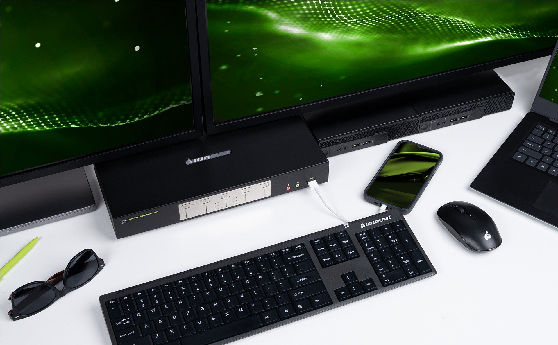 - Operate 4 DisplayPort computers with 1 keyboard, mouse, and 2 monitors