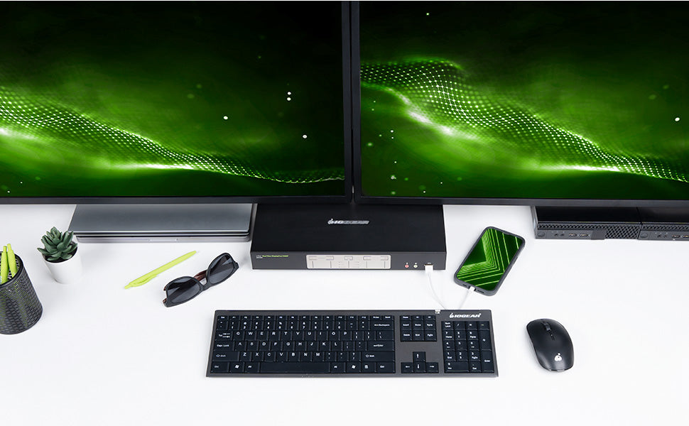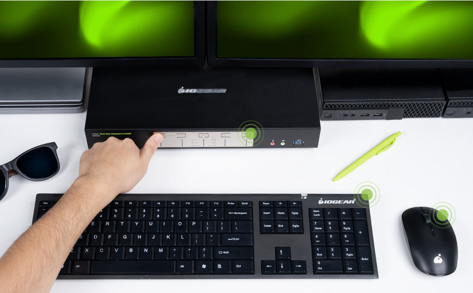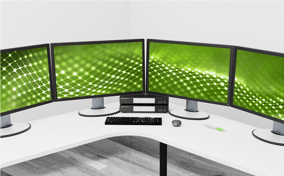 - Operate 4 DisplayPort computers with 1 keyboard, mouse, and 2 monitors