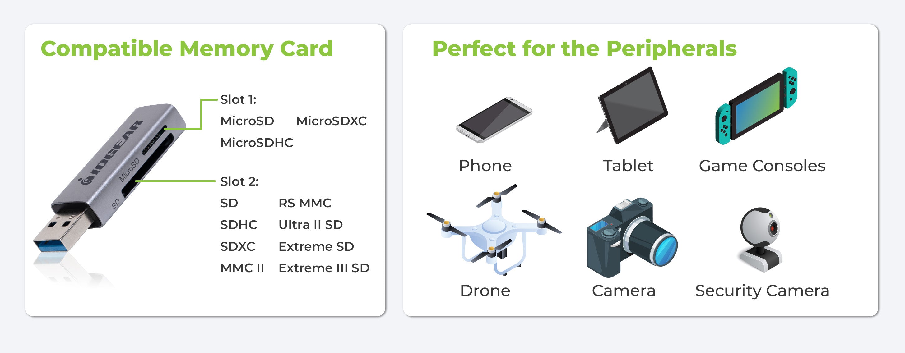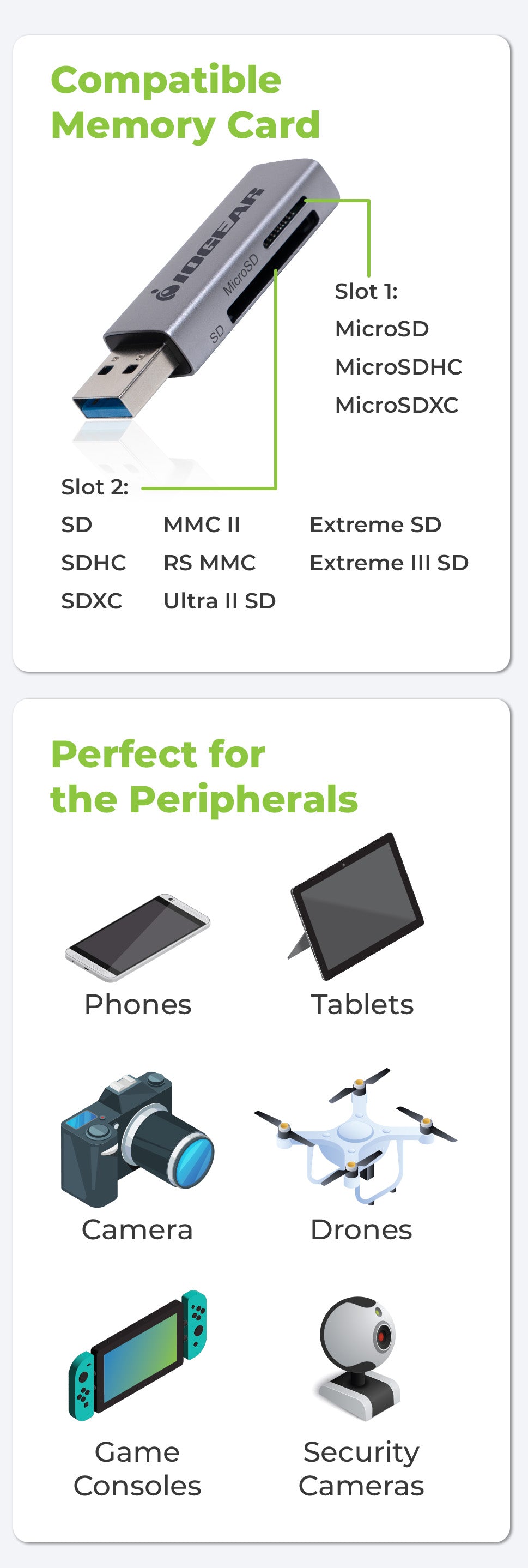 Memory Card Reader for Smartphones, Tablets and Cameras