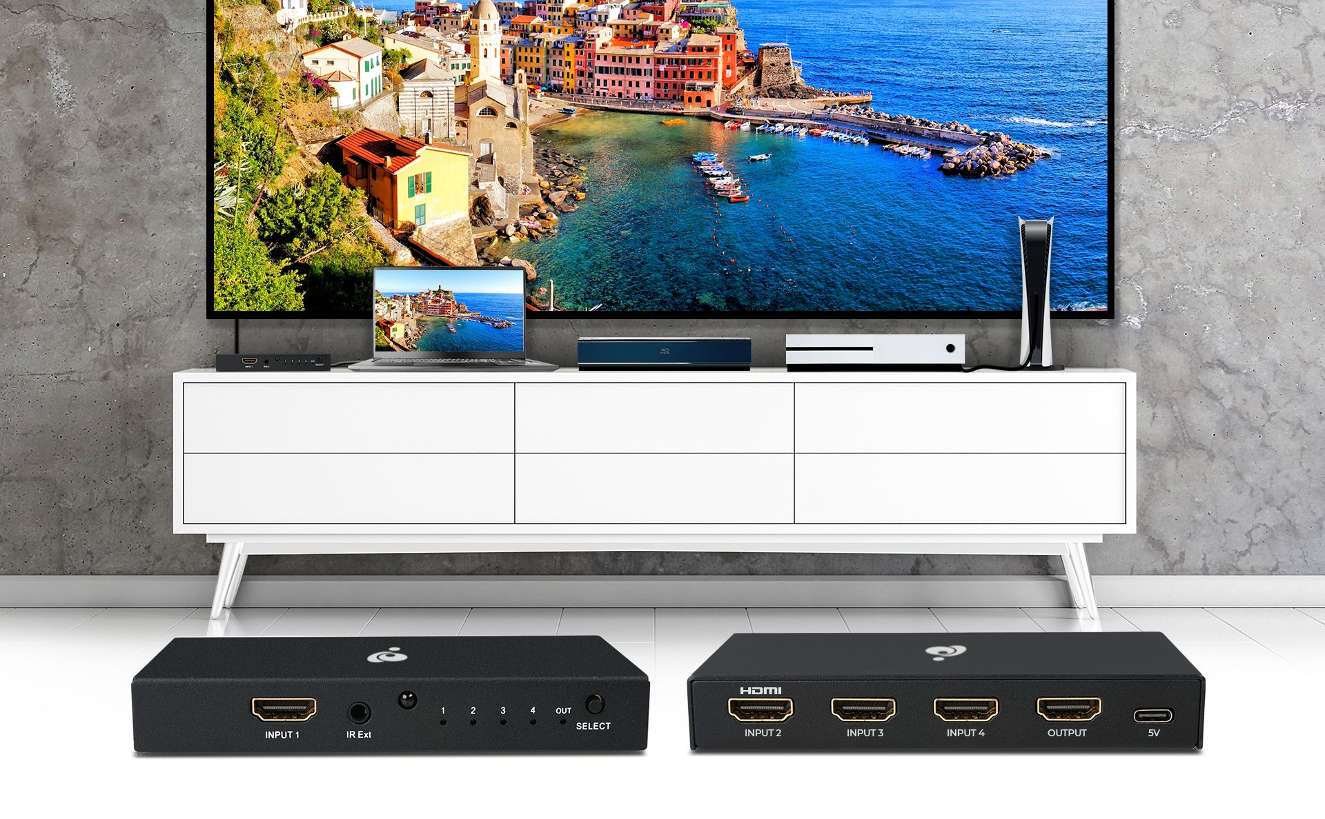 Easily switch between four different HDMI sources