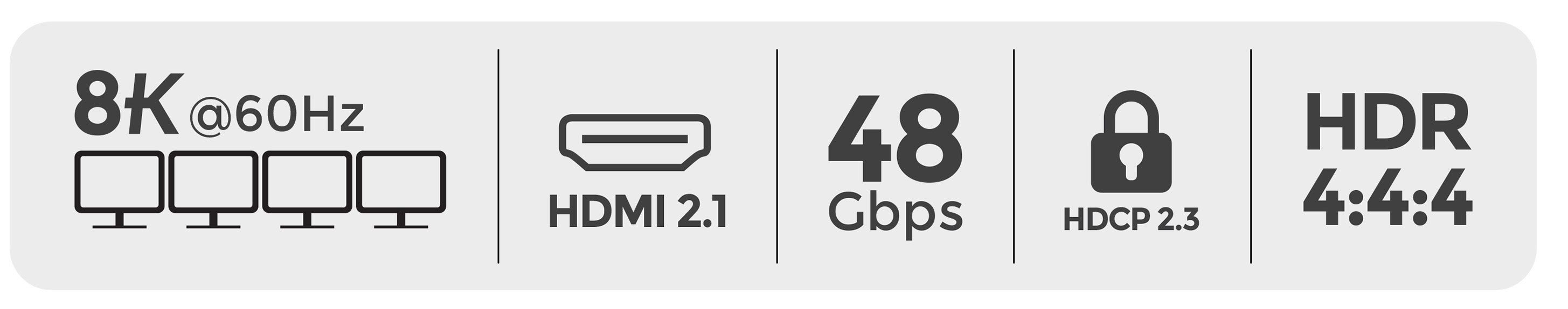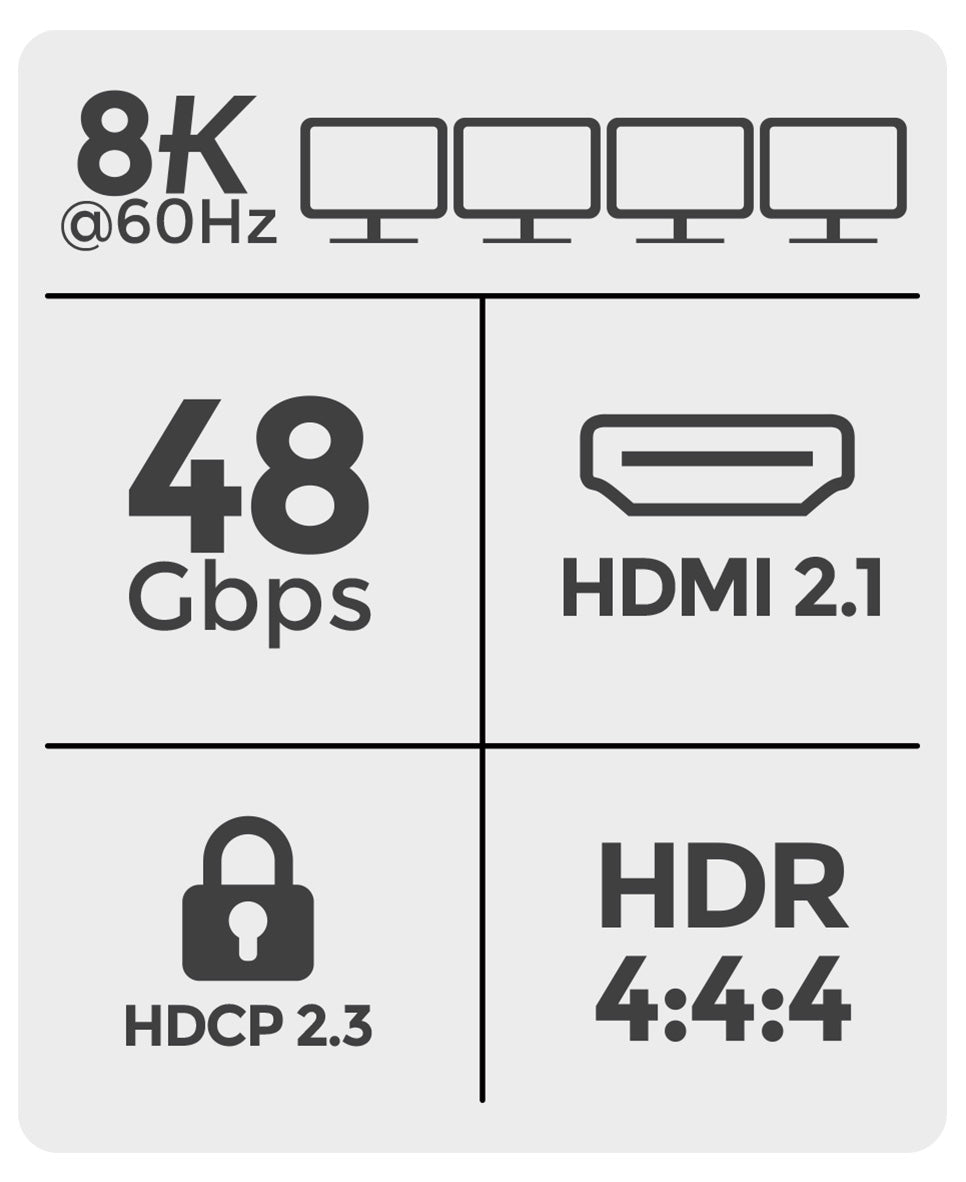 Model GHSP8824 Video connections Input 1 x Female HDMI Type A 19-Pin Output 4 x Female HDMI Type A 19-Pin LEDs Input 1 Output 4 Power On 1 Housing Case Metal Warranty 1-Year Video Resolution Up to 8K@60Hz Environment Humidity 10-80% Operation Temperature 32~122ºF Storage Temperature -4~140ºF Power Voltage 5 V Amps 1A Connectors Video Input Female HDMI Type A 19 Pin Video Output Female HDMI Type A 19 Pin