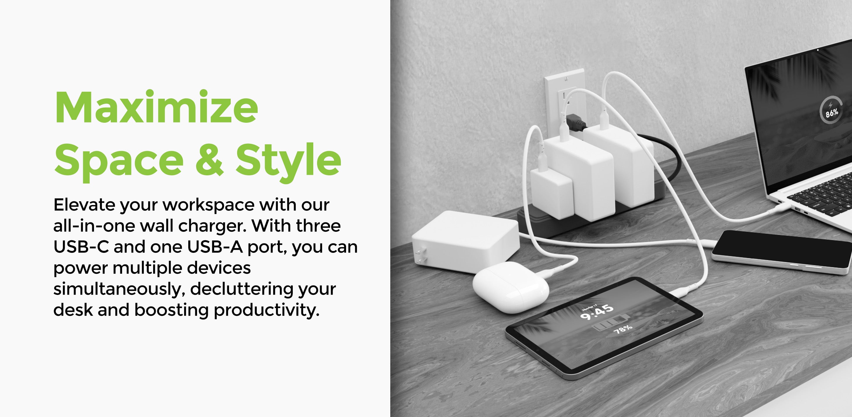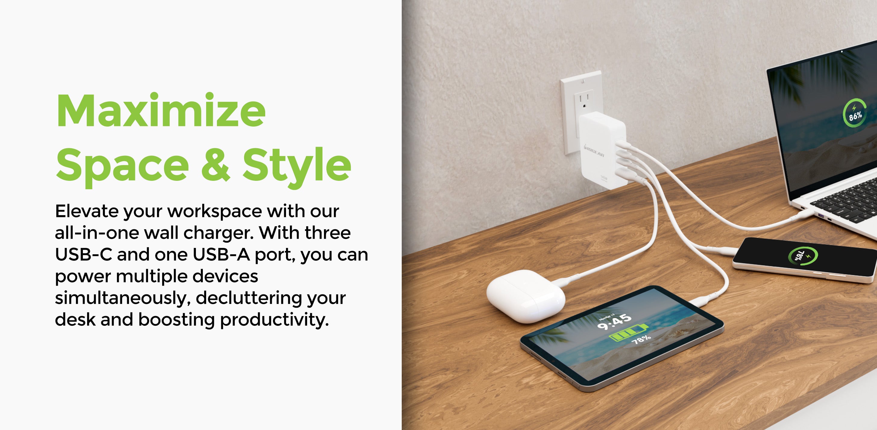 2x USB-C Up to 140W 1x USB-C Up to 45W 1x USB-A Up to 18W USB-C1/C2: 28V5A 140W Max USB-C3: 20V2.25A 45W Max USB-A4: 12V1.5A 18W Max USB-C1/USB-C2+USB-C3 Used: USB-C1/USB-C2+USB-A4 Used: USB-C1+ USB-C2 Used: USB-C3+USB-A4 Used: USB-C1+USB-C2+USB-C3 Used: USB-C1+USB-C2+USB-A4 Used: USB-C1/USB-C2+USB-C3+USB • USB-C1: 20V3.25A 65W Max • USB-C2: 20V1.5A 30W Max • USB-C3: 9V2.77A 25W Max • USB-A4: 12V1.5A 18W Max
