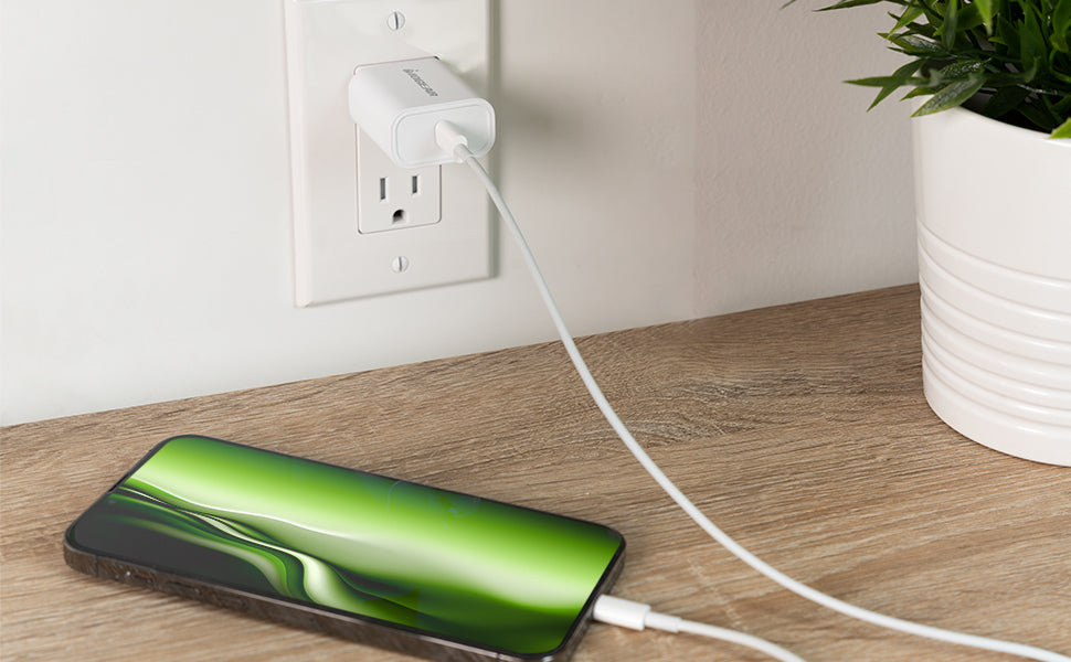- Compact charger powers most USB-C smartphones