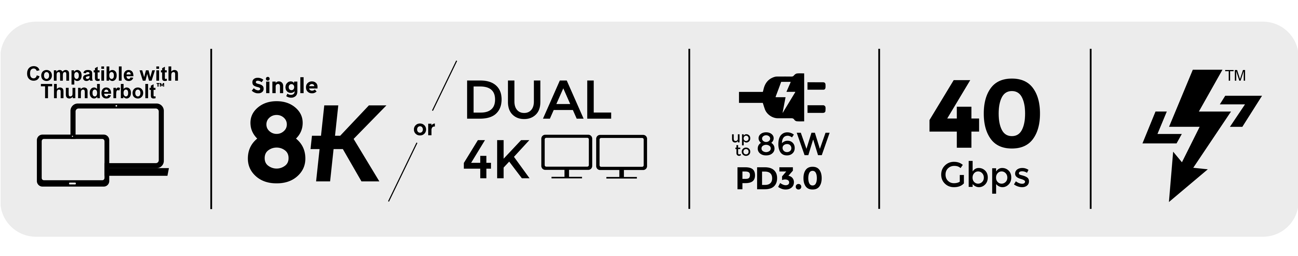 | Thunderbolt | 3x Thunderbolt 4 Full feature USB-C ports (Up to 8K@30hz) |