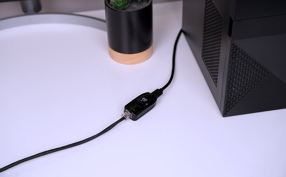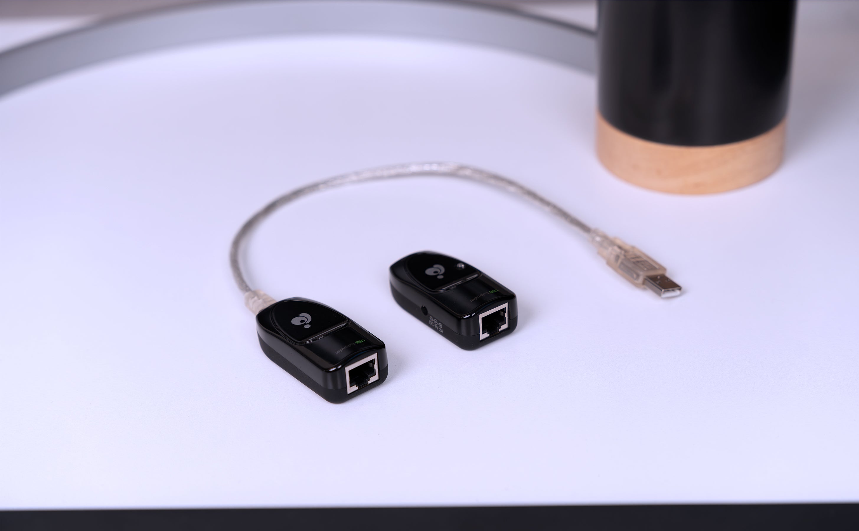 - Extend USB connection through Cat5, Cat5e, or Cat6 cable