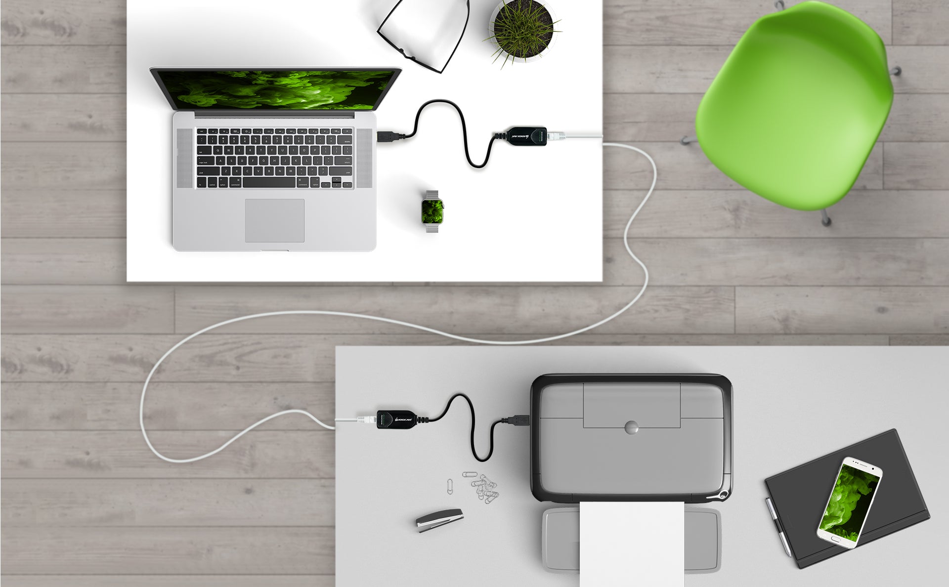 - Access a single USB device from up to 164 feet away via Ethernet connection
