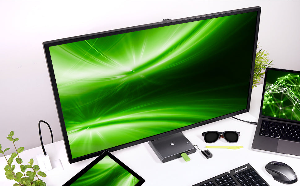 • Control and share 2 USB-C devices with DP Alt Mode from one keyboard, mouse, and an HDMI monitor