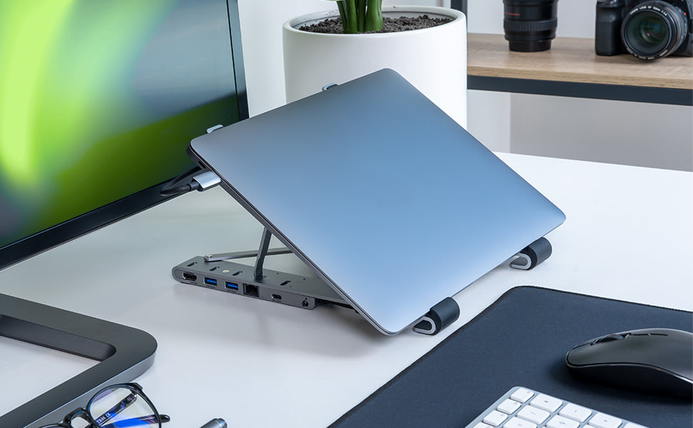 Innovative Compact USB-C Docking Station and Laptop Stand