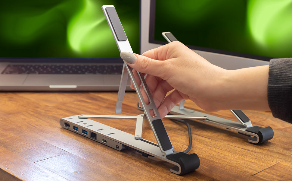 - Folding Collapsible Laptop Stand w/ Built-In USB-C Docking Station