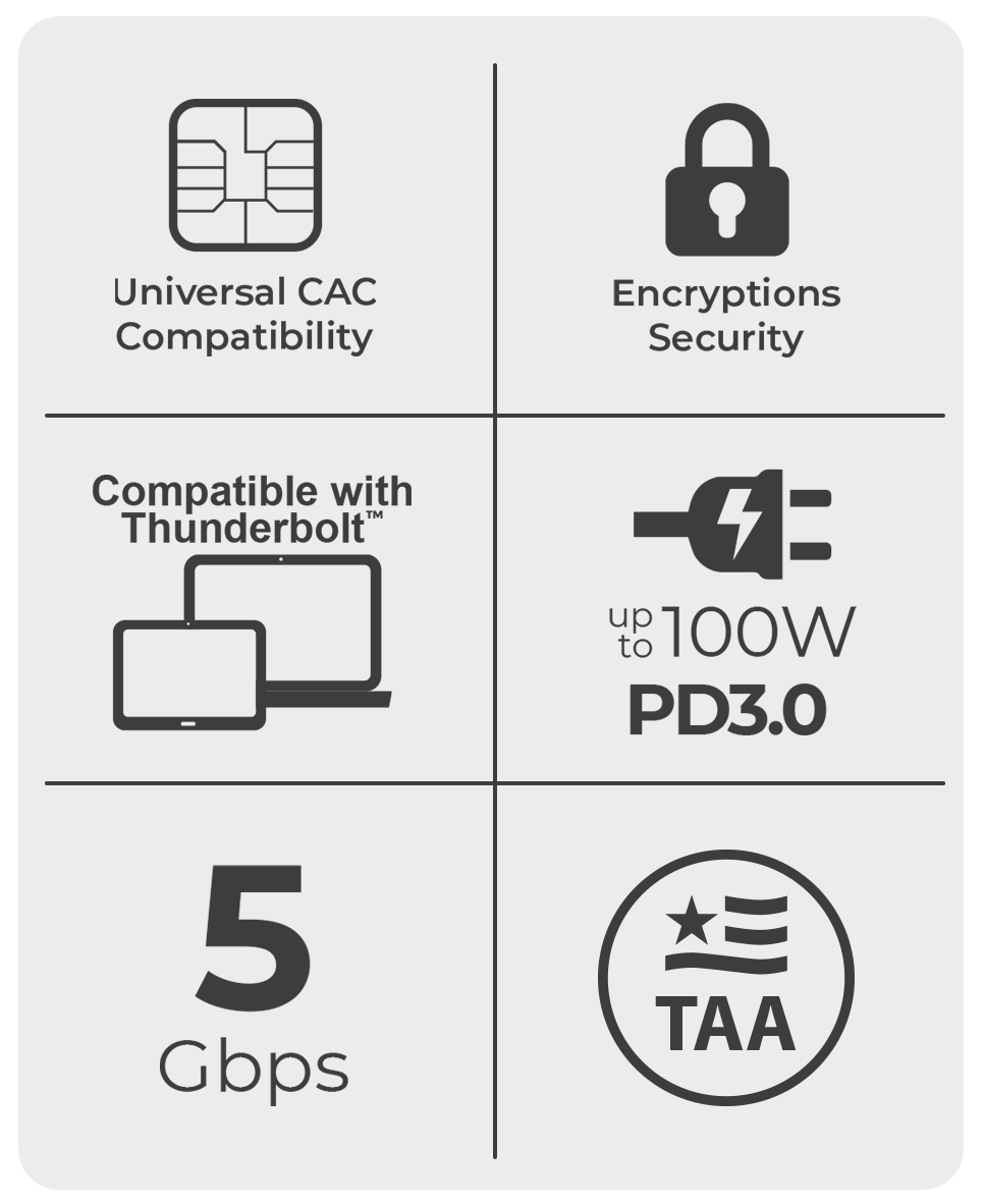 USB-C CAC Reader Hub with Power Pass Through(TAA)