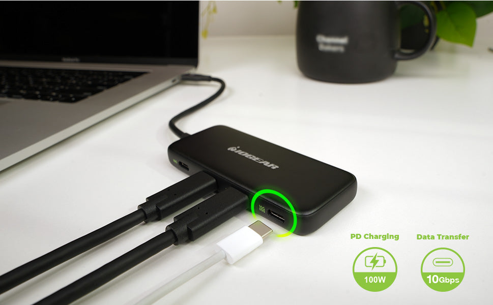 Function GUH3C4C Upstream Port USB-C Built-in USB 3.2 Gen 2 (10 Gbps) Downstream Ports USB-C 3x USB-C 3.2 Gen 2 (10 gbps) USB-C Operating System Requirements Mac Mac OS (10.13+ or later) Windows Windows® 8, 8.1,10, 11 Power Power Pass-thru USB-C Up to 100W