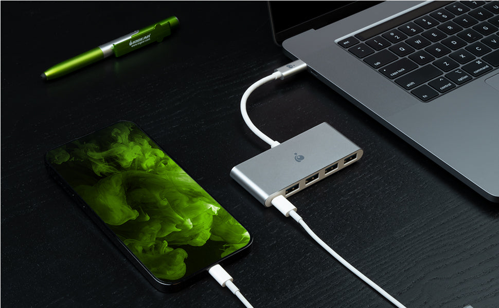 USB-C to 4 Port USB-A Hub with Power Delivery Pass-Through