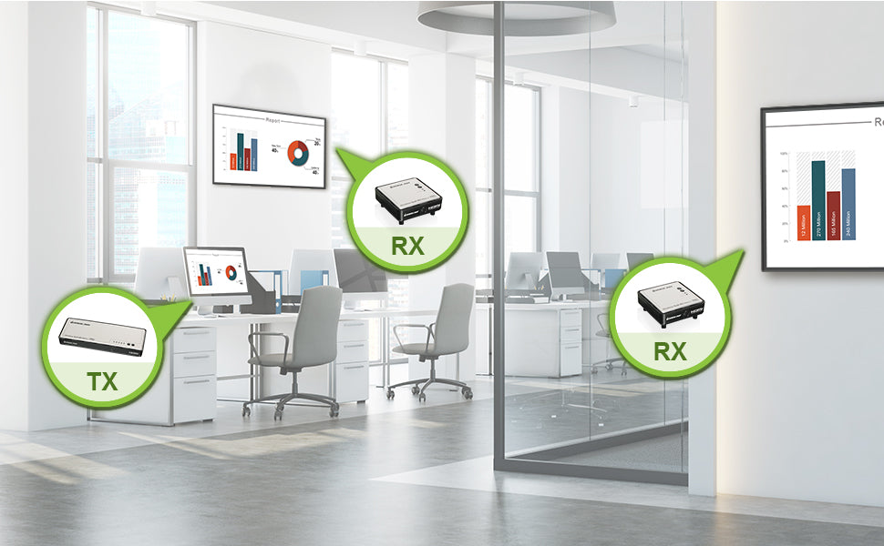 ***Expand beyond one wireless display to multiple wireless displays with Multicast capabilities. Simply add up to 3 additional wireless receivers broadcasting to a total of 4 wireless receivers from the same HD video source.