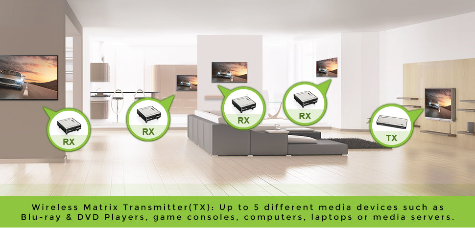 Long-Range HDMI Wireless Video 5x2 Matrix PRO with 1 Receiver